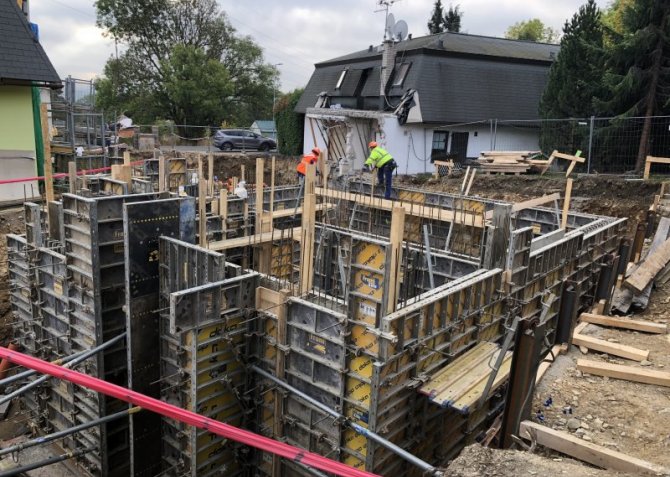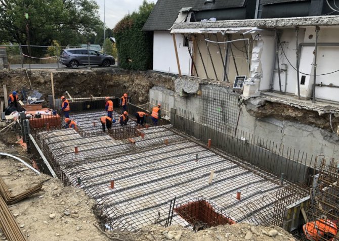 Prováděné práce: Železobetonové základy a stropy, ocelová konstrukce, zdivo z pálených cihel, bednění Doka, provádění omítek, podlah, instalací, dodávka výplní otvorů a vybavení koupelen, obkladačské práce, klempířské a pokrývačské práce, Dále se provádí kanalizace, drenáže, elektroinstalace a komunikace.